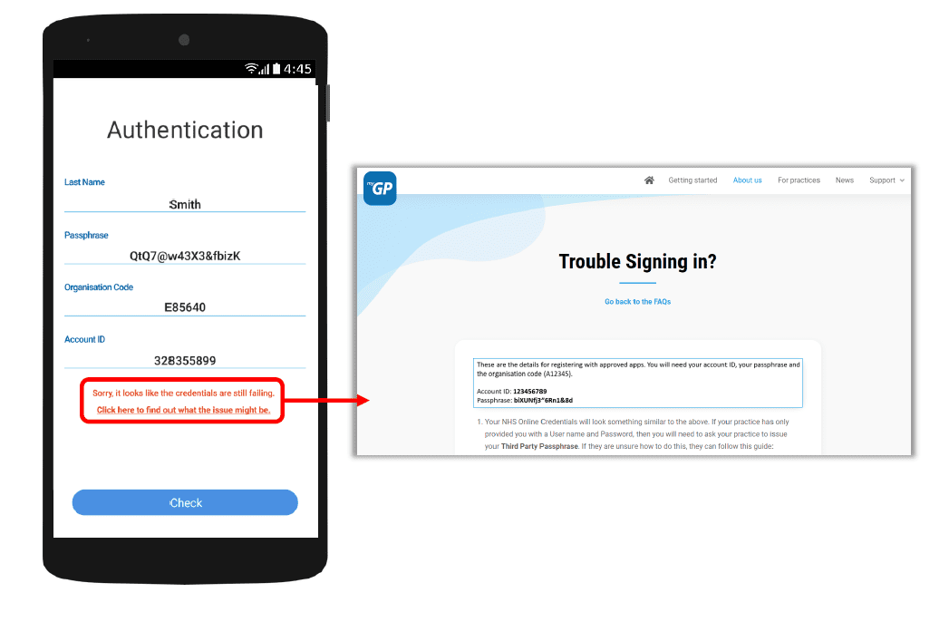 If they have issues entering details, the error response will link them to the myGP FAQ to provide further help.