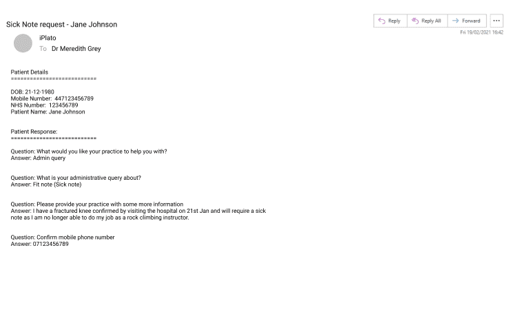 - Fit Note (Sick Note): request a Sick Note via online triage